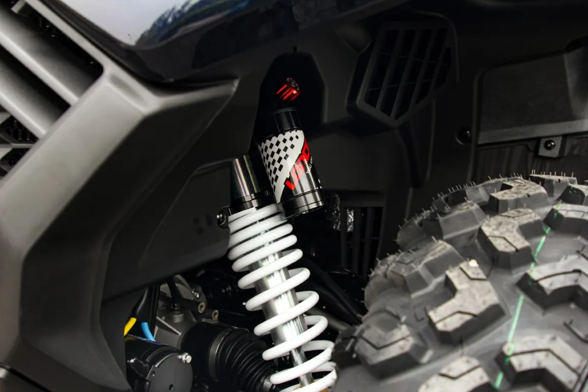 В этом квадрике ходовая без слабых мест. Независимые двухрычажные подвески с ходом 235 мм спереди и 255 мм сзади. Регулируемые амортизаторы. Дисковые тормоза с двухпоршневыми суппортами на каждом колесе. Никакой самодеятельности - только заводская инженерия.