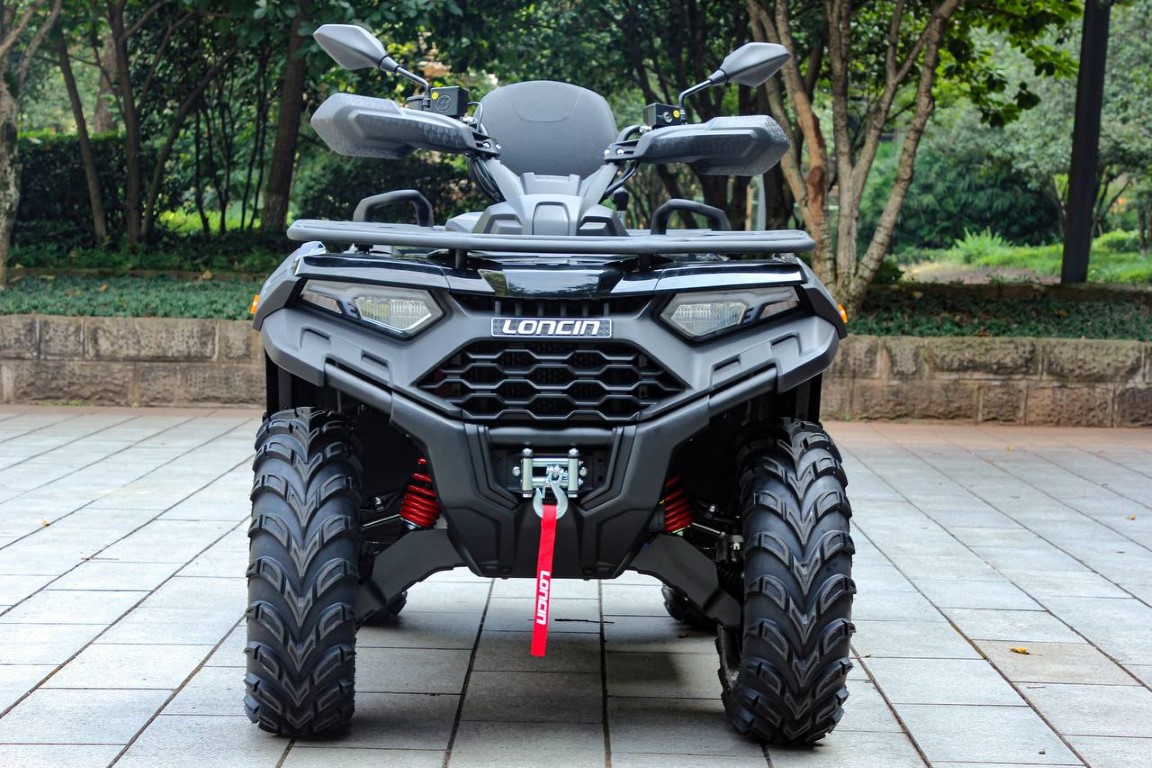 В паре с двигателем работает бесступенчатая трансмиссия с несколькими режимами и передним дифференциалом. Квадроциклы Loncin XWolf 550L оснащены надежной лебедкой - вытащат, если завязнете.
