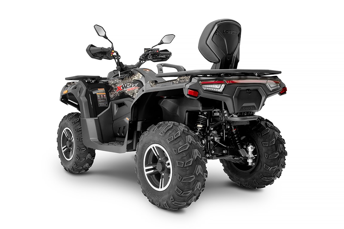 Стильная решетка радиатора, как у моделей XWolf 700L и XWolf 1000, фары со светодиодными ходовыми огнями. Мощные бамперы, два практичных багажника спереди и сзади, легкосплавные колесные диски и защита основных элементов из прочнейшего пластика. Информативная приборная панель с LCD-дисплеем держит в курсе всех параметров поездки.