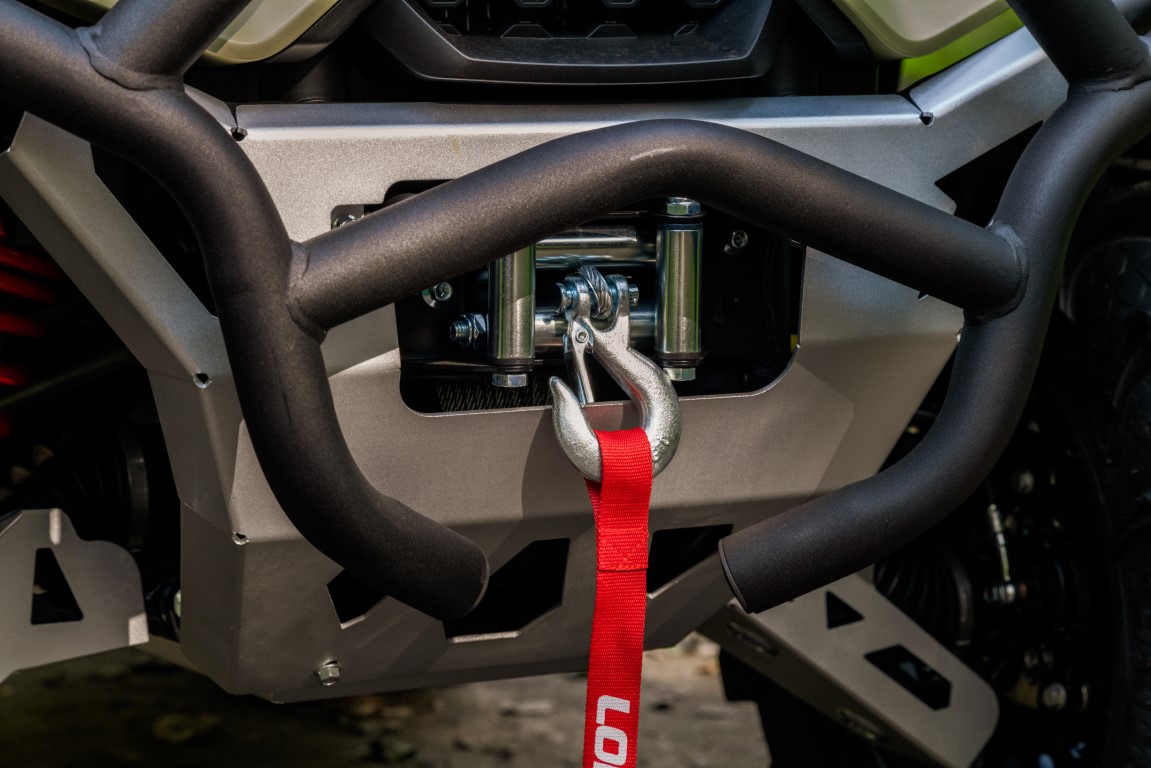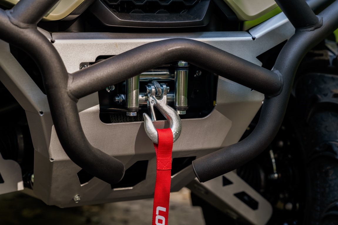 Комфорт в квадроцикле XWolf 700L MUD - не просто приятное дополнение, а часть философии. Защита рук, три розетки (12V + два USB), гермоотсеки для документов и инструментов, спинка и поручни для пассажира. И тягово-сцепное устройство на 800 кг - прицеп с дровами или лодку вытянет без вопросов.