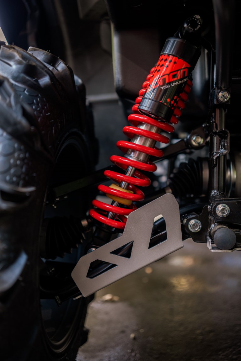 Ходовая XWolf 700L MUD - с запасом прочности. Длинноходные двухрычажные подвески с регулируемыми амортизаторами, увеличенный клиренс 305 мм, шины с развитыми грунтозацепами. Это не паркетник - это зверь, который не просит буксир.