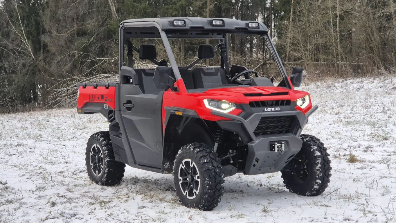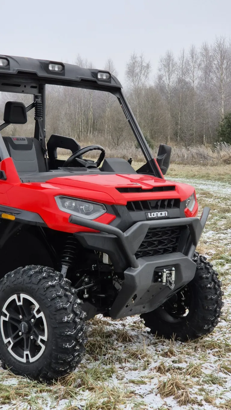 UTV Loncin UWolf 1000 выполнен в утилитарном, брутальном дизайне с акцентом на функциональность. Усиленные бамперы спереди и сзади, защита днища и массивные внедорожные колёса подчёркивают его рабочий характер. Конструкция кузова рассчитана на интенсивные нагрузки и эксплуатацию в грязи, снегу и на пересечённой местности.