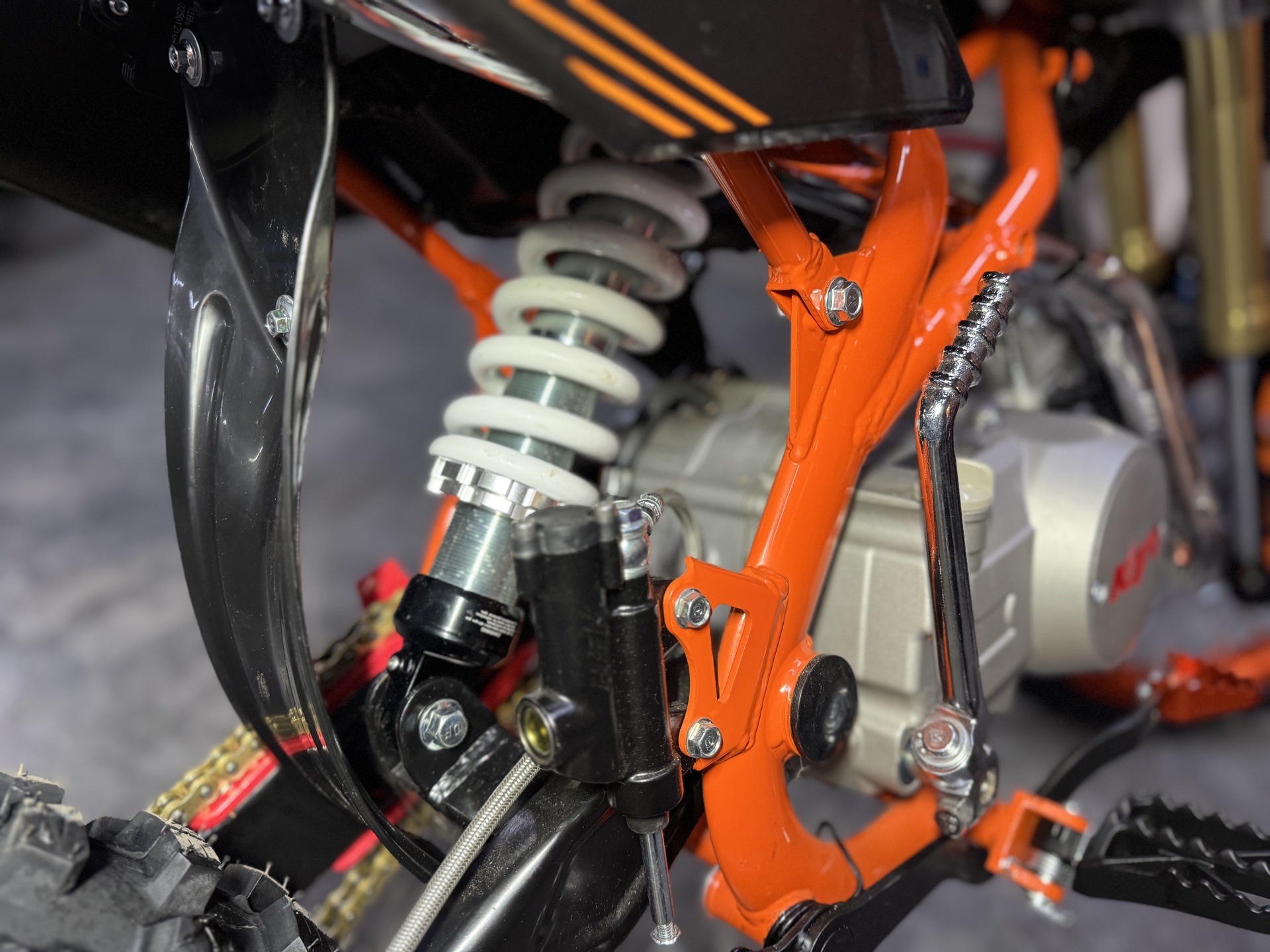 Вес мотоцикла очень небольшой и составляет всего 78 кг. Усиленная рама из хром-молибденового сплава и подвеска позволяют эффективно амортизировать удары при езде по неровностям и препятствиям на трассе. Передняя подвеска — телескопическая вилка перевёрнутого типа длиной 770 мм, задняя — моноамортизатор длиной 360 мм. Оба компонента подвески являются нерегулируемыми. Рама и пластик являются собственной разработкой производителя.
