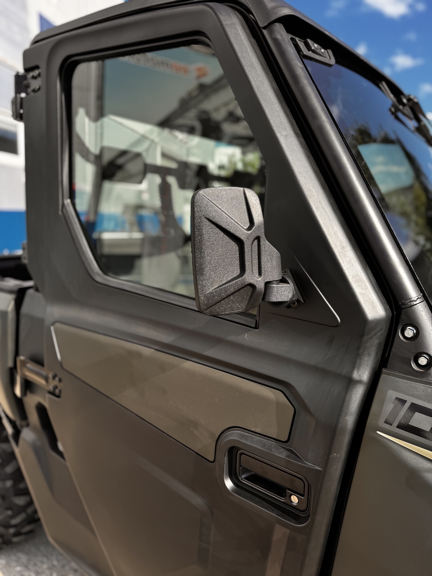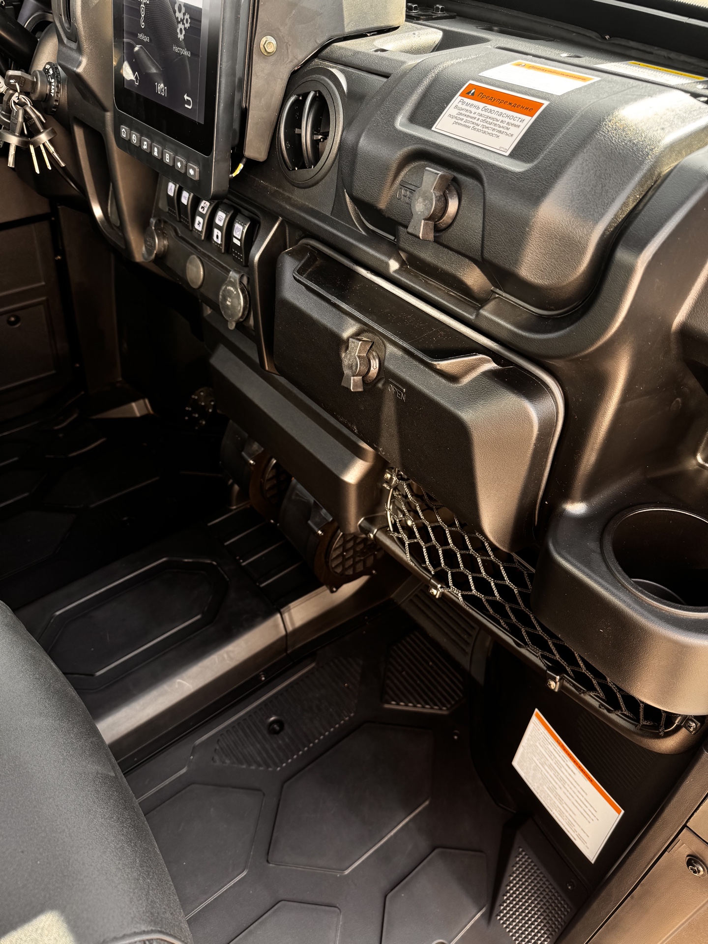 не поставив трансмиссию в режим паркинг. Светодиодный ближний свет 26 Вт / Светодиодный дальний свет 64 Вт; 4,3-дюймовый+10,4" TFT дисплей; Счетчик моточасов, спидометр, одометр и счетчик пройденного пути, температура двигателя, индикатор низкого давления масла в двигателе, уровень топлива, напряжение, тахометр, индикатор включенной передачи, индикатор стояночного тормоза, индикатор перегрева, напоминание о необходимости техобслуживания, самодиагностика, часы, индикатор пробуксовки ремня, индикатор ремня безопасности, индикатор предупреждения о неисправном зажигании; Фаркоп; Передний бампер; Лобовое и заднее стекло; Стеклоочеститель; Зеркала заднего вида и боковые; Крыша; Стояночный тормоз с электроприводом; Лебедка 2000 кг. (4500 фунтов) с синтетическим канатом; Сигналы поворота; Аварийная сигнализация; Салонное освещение; Помощь при спуске; Система помощи при трогании на подъеме; Камера заднего хода; Система отопления и вентиляции; Стекла на левой и правой дверях;